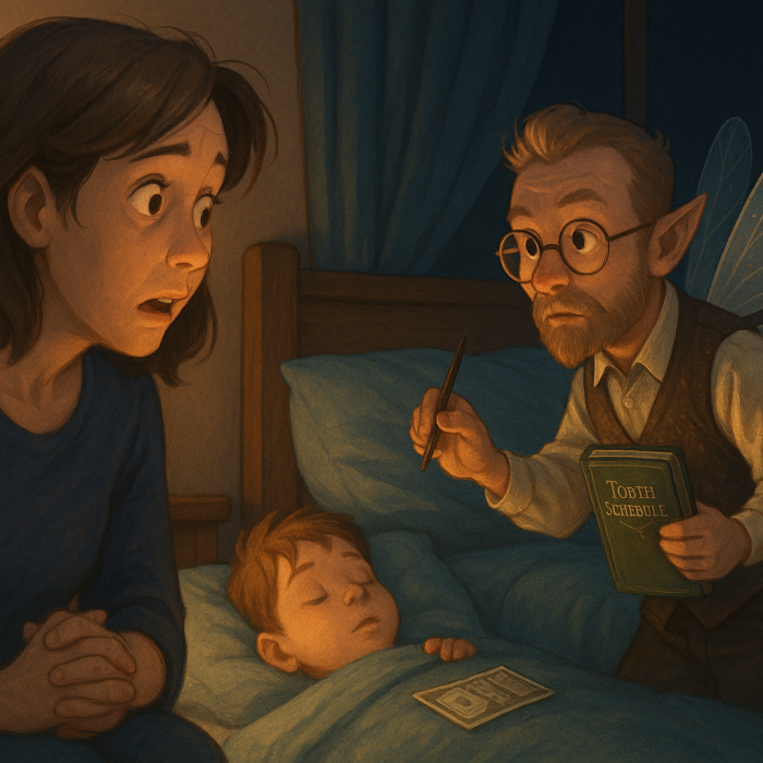 After forgetting to leave money for her son’s lost tooth, a weary mom’s life is upended when a bizarre note and official calendar from the Tooth Fairy reveal a secret, unionized world of nocturnal service workers.