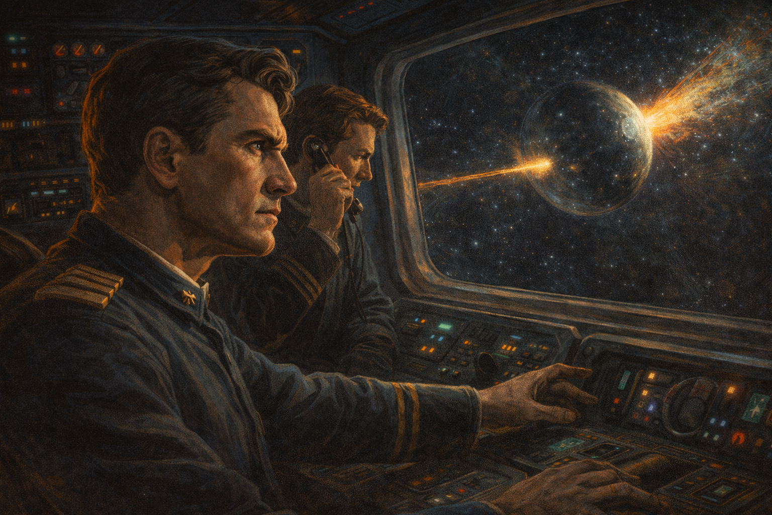 Faced with an alien predator whose weapons render Earth’s strongest defenses useless, Commander Jon McPartland must execute a desperate scientific bluff and a high-stakes tactical gamble to save the Solar System from total annihilation.